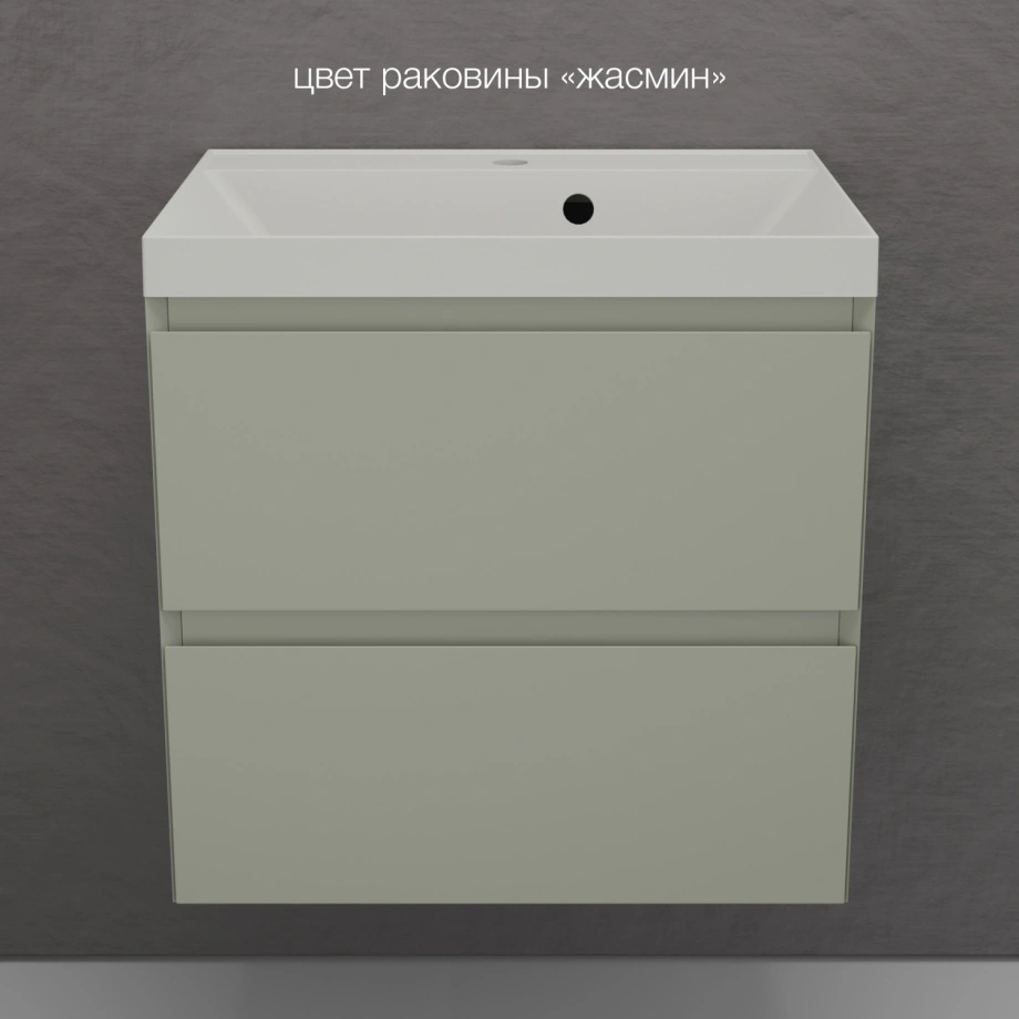 Тумба подвесная Style Line Манхэттен 60 Эмаль, с раковиной Asti 60 кварц/жасмин, олива