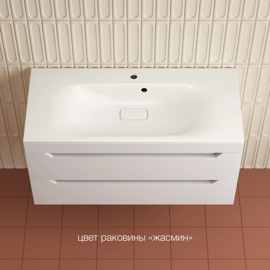 Тумба подвесная Style Line Остин 100 с раковиной Фортуна 100 кварц жасмин, белый