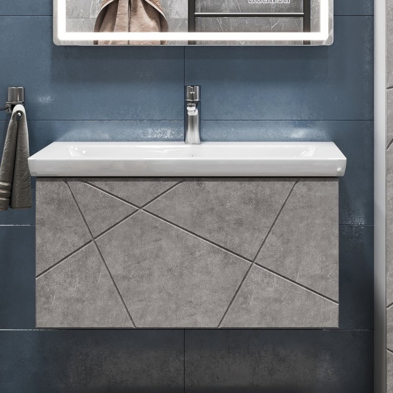 Тумба подвесная Vigo Geometry 80 с раковиной Neo 80, бетон
