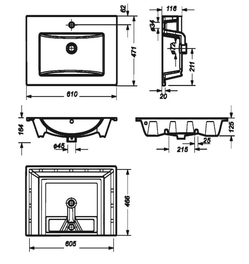 Раковина с отверстием под смеситель и переливом - цвет белый.