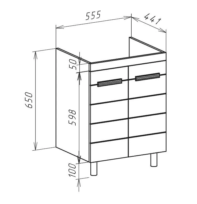 Тумба под раковину Сиена 60 см прямая - 550х840х460 ШхВхГ мм. ( Высота указана с ножками и раковиной ). Высота ножек 10 см.