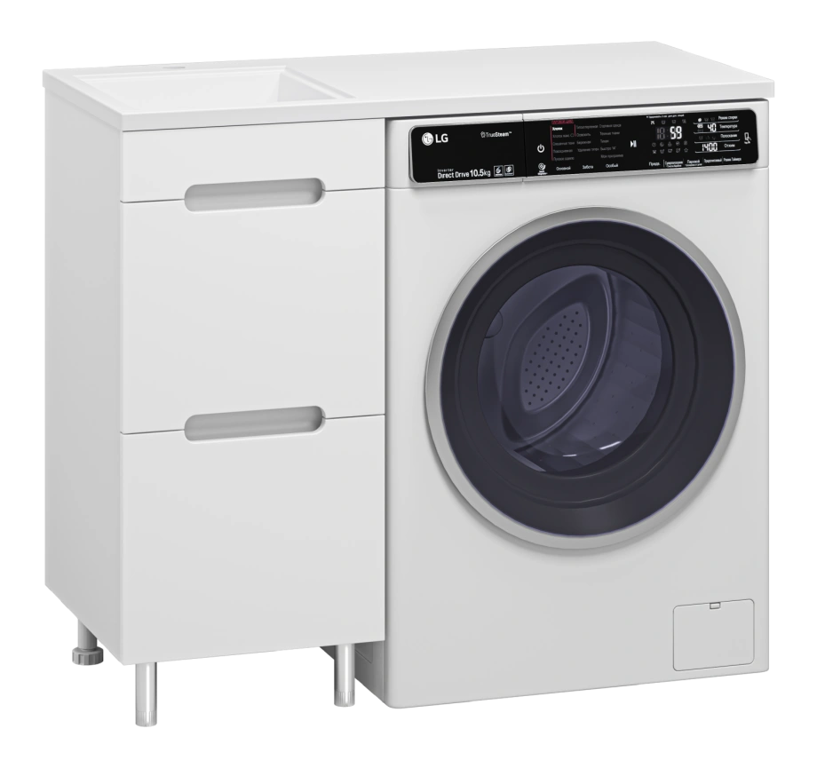 Тумба с раковиной Misty Байкал 40 под стиральную машину, с раковиной Misty Гавана 100 L, белый