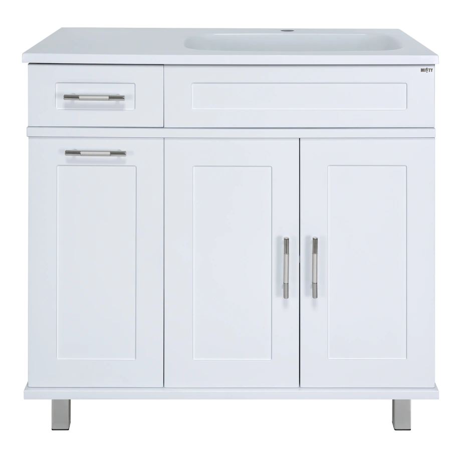 Тумба с раковиной Misty Купер 90 с бельевой корзиной, R, белый