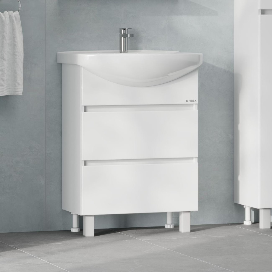 Тумба с раковиной Onika Элита белая 60.13 напольная, белая.