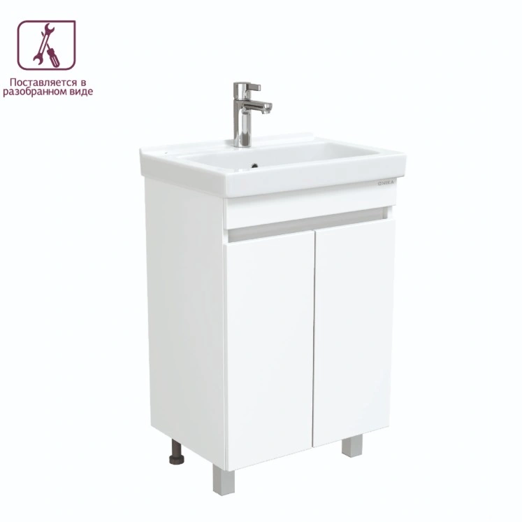 Тумба с раковиной Onika Милтон Квадро 55 напольная, белый, (разборная)