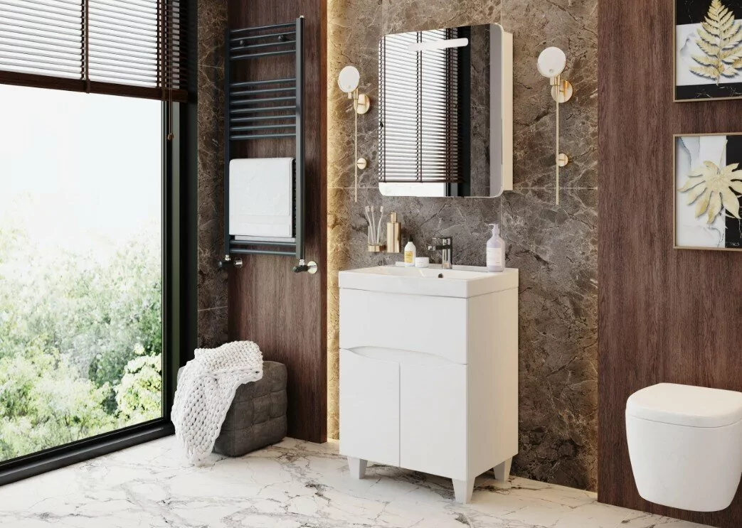 Тумба с раковиной Onika Стрим 60.12 напольная, белая.