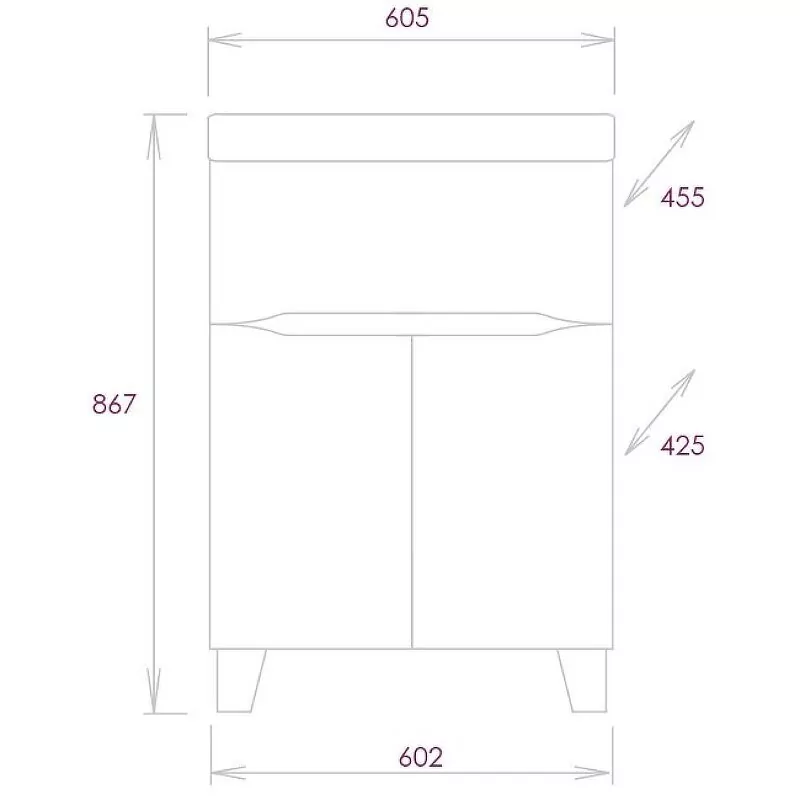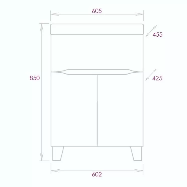 Размер - 602x425x867 мм. Напольная. С механизмом доводчика, обеспечивающим плавное закрывание. Материал корпуса: ЛДСП/ДСП. Покрытие корпуса: ламинат. Материал фасада: МДФ. Покрытие фасада: пленка. Ящики/дверки.