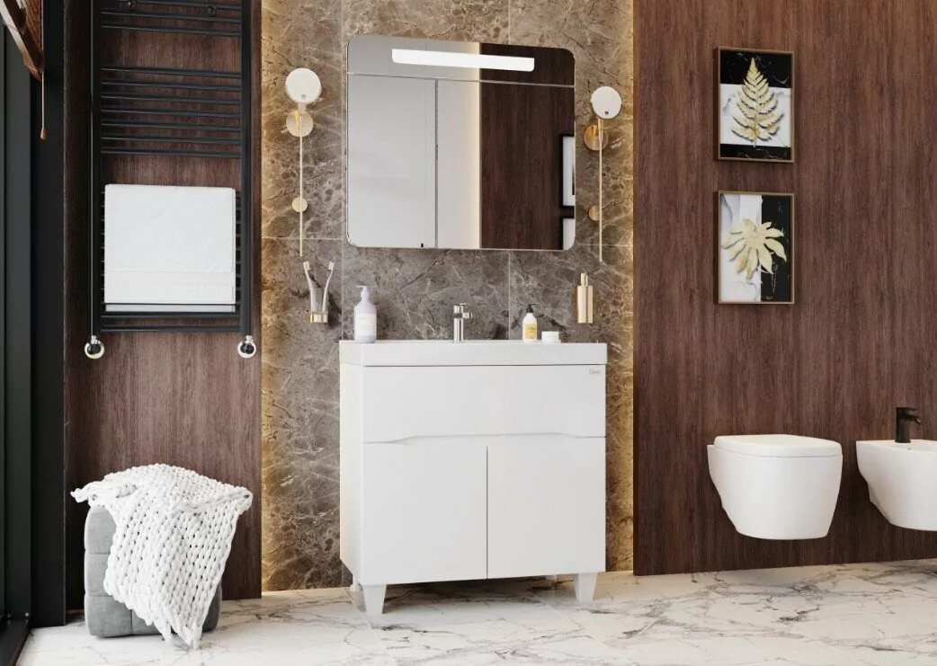 Тумба с раковиной Onika Стрим 80.12 напольная, белая.