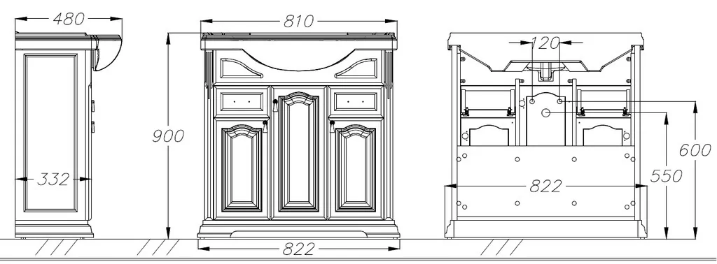 Размер раковины Кировит Классик 80 - 810х212х475 мм.