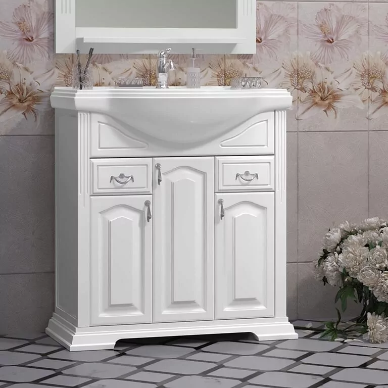Данная модель не только позволит эргономично разместить необходимые принадлежности, но и скрыть элементы трубопровода. Тумба с раковиной Риспекто 80 поможет заполнить свободное пространство в вашей ванной, при этом не загромождая его.