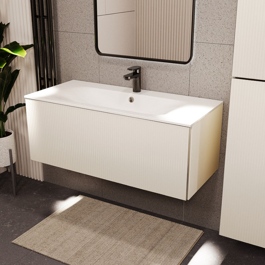 Тумба с раковиной подвесная (100 см) Terminus Euromix EUR101001900101OSL, айвори