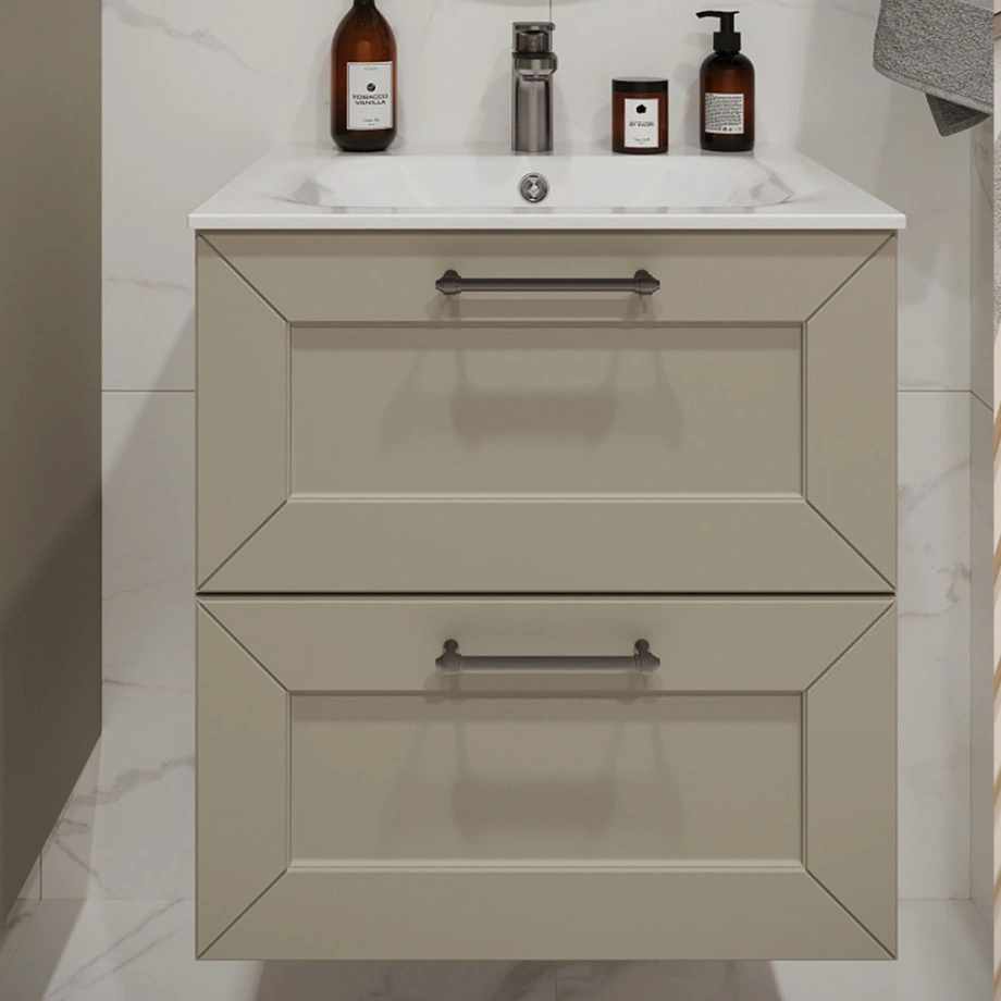 Тумба с раковиной подвесная (60см) Terminus Victoria VIC10602900101O, айвори. Раковина из литьевого мрамора в комплекте: диаметр отверстия под смеситель: 35, диаметр отверстия слива: 45 мм, диаметр отверстия перелива: 30 мм. Ширина тумбы: 600 мм. Тип фасада: Филенчатая фрезеровка . Материал ящиков: ДСП. Количество ящиков: 2. Сифон и данный клапан приобретаются отдельно и в комплект поставки не входят. В тумбе установлена фурнитура Firmax. Система открывания: Металлические ручки . Технология направляющих: Soft-Close, полного выдвижения, с доводчиком. Тумба поставляется в сборе. Гарантийный срок 2 года.
