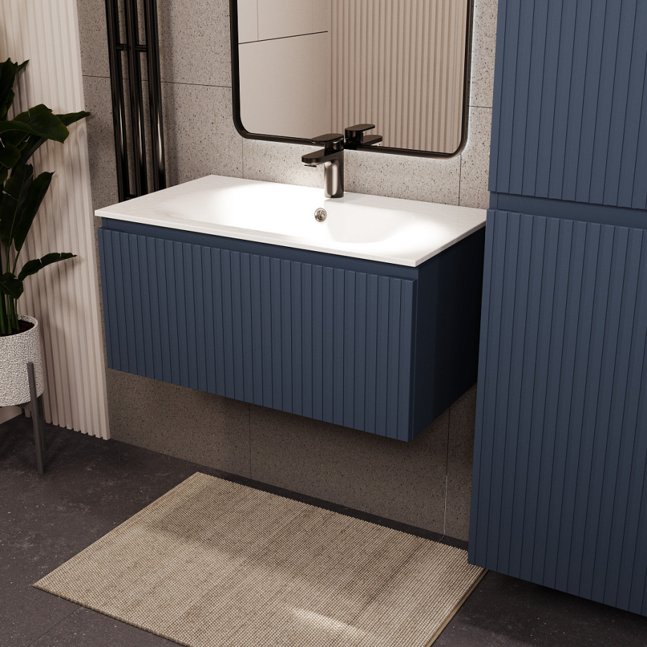 Тумба с раковиной подвесная (80см) Terminus Vatikan VAT10801703101O, серый шёлк. Раковина из литьевого мрамора в комплекте: диаметр отверстия под смеситель: 35, диаметр отверстия слива: 45 мм, диаметр отверстия перелива: 30 мм. Ширина тумбы: 800 мм. Тип фасада: Флейтовая фрезеровка . Материал ящиков: ДСП. Количество ящиков: 1. Сифон и данный клапан приобретаются отдельно и в комплект поставки не входят. В тумбе установлена фурнитура Firmax. Система открывания: Фрезерованные ручки. Технология направляющих: Soft-Close, полного выдвижения, с доводчиком. Тумба поставляется в сборе. Гарантийный срок 2 года.