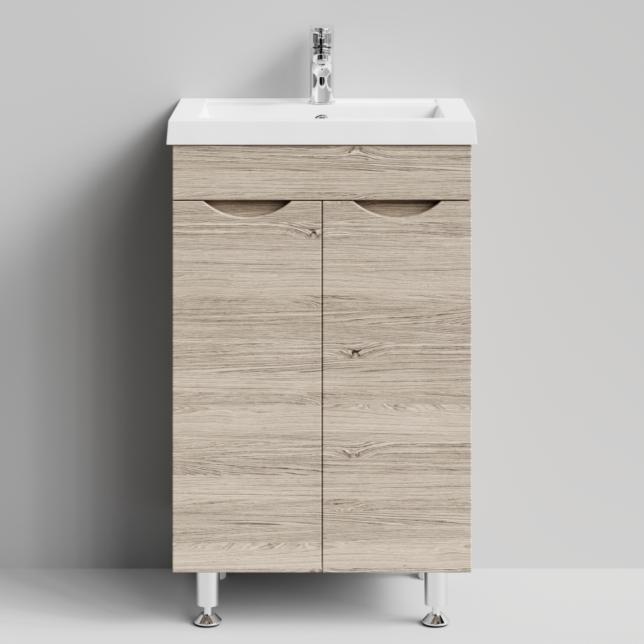 Тумба с раковиной Vod-ok Смайл 50 напольная, Дубослив ореховый светлый