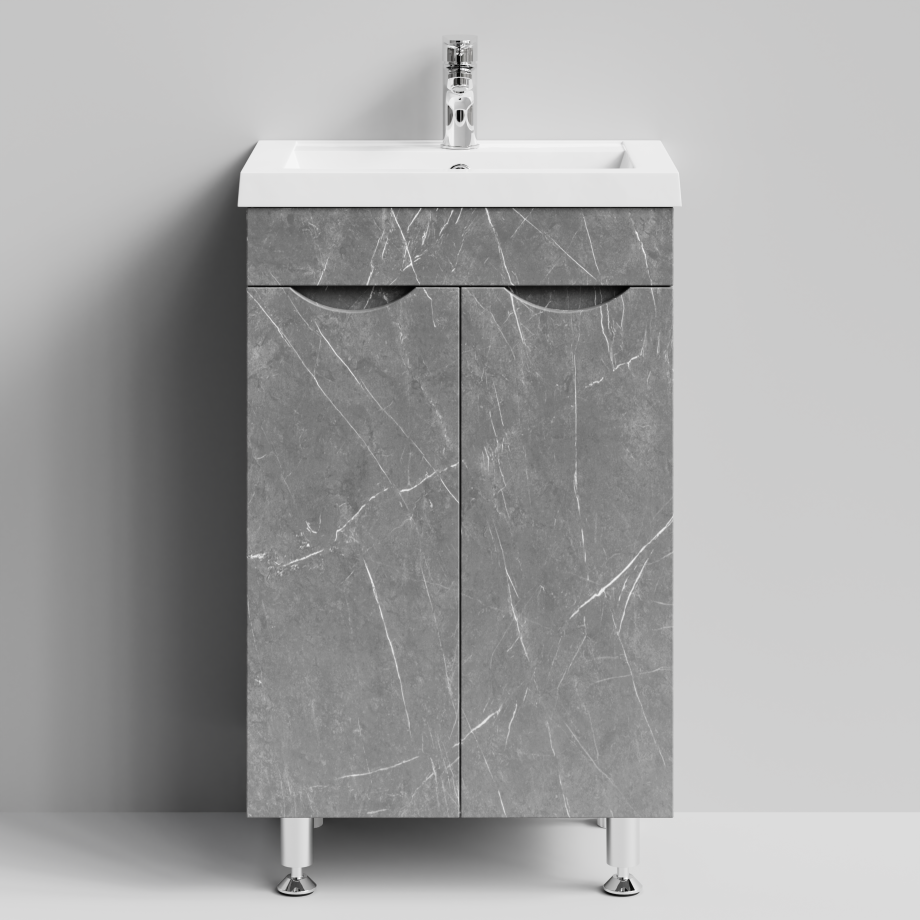 Тумба с раковиной Vod-ok Смайл 50 напольная, Мрамор Серый софт тач