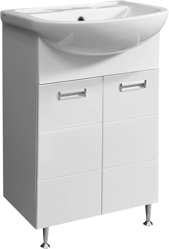 Тумба под раковину Stella Polar Фиора 55 SP-00000212. Характеристики: Цвет: белый. Материал корпуса: ЛДСП. Покрытие корпуса: ламинат, матовое. Материал фасада: МДФ. Покрытие фасада: пленка, глянцевое. Габариты (ШхВхГ): 50,4х82х30 см. Монтаж: напольный. Система хранения: 2 распашные дверцы, полки.