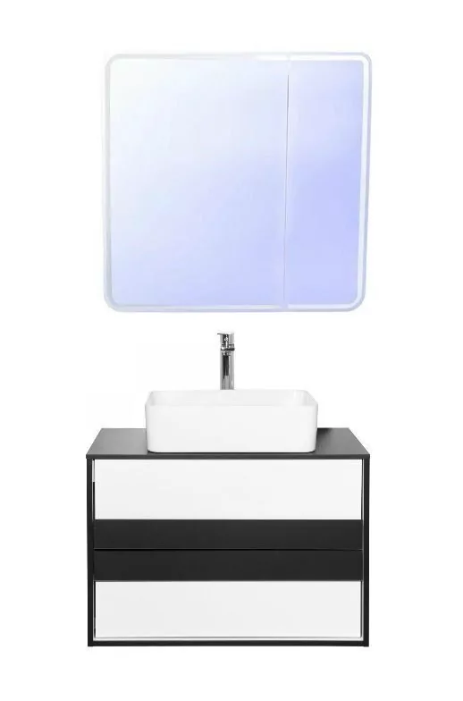 Тумба с раковиной Style Line Амстердам 80 белая, матовая с черным, подвесная.