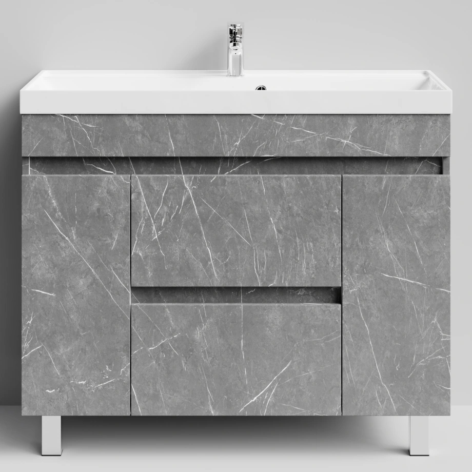 Тумба с раковиной Vod-ok Бест 100 (2 ящика, 2 двери) напольная, Мрамор Серый софт тач
