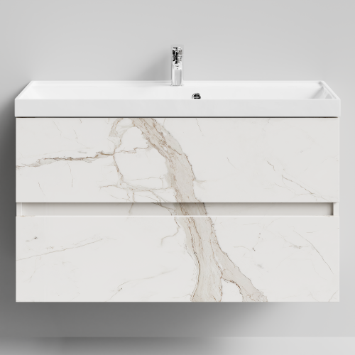 Тумба с раковиной Vod-ok Бест 100 подвесная, Мрамор Белый натур милк