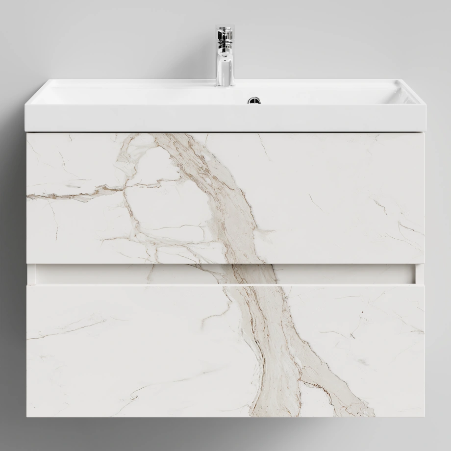 Тумба с раковиной Vod-ok Бест 80 подвесная, Мрамор Белый натур милк