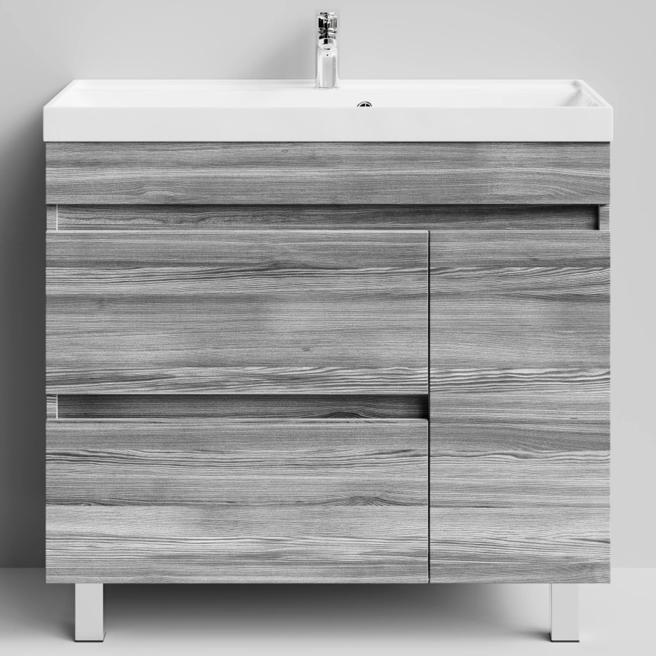 Тумба с раковиной Vod-ok Бест 90 правая дверь, напольная, Лиственница структурная контрастно-серая