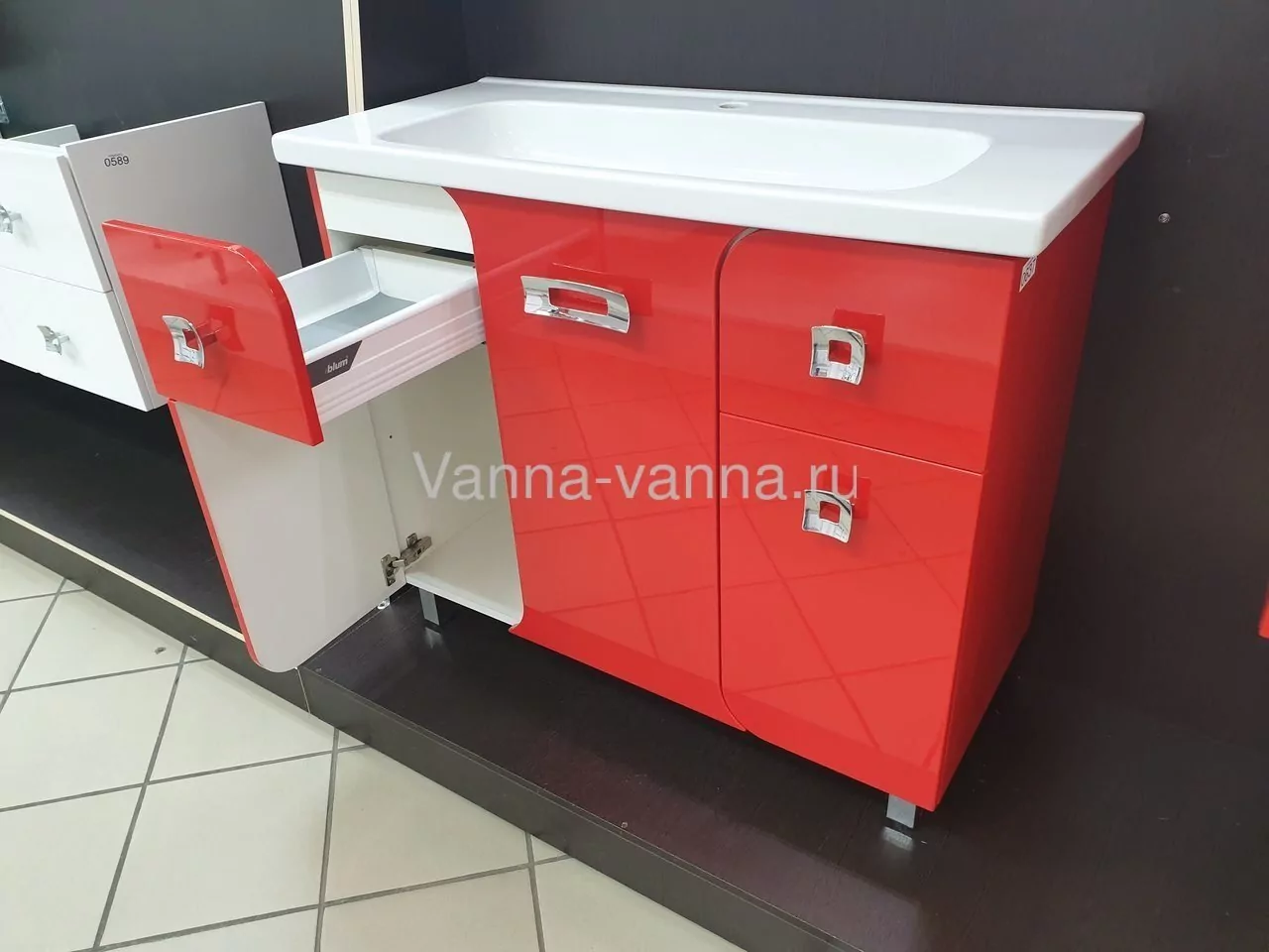 Тумба с раковиной для ванной Vod-ok Elite Арнелла 100 напольная, две двери и три ящика.