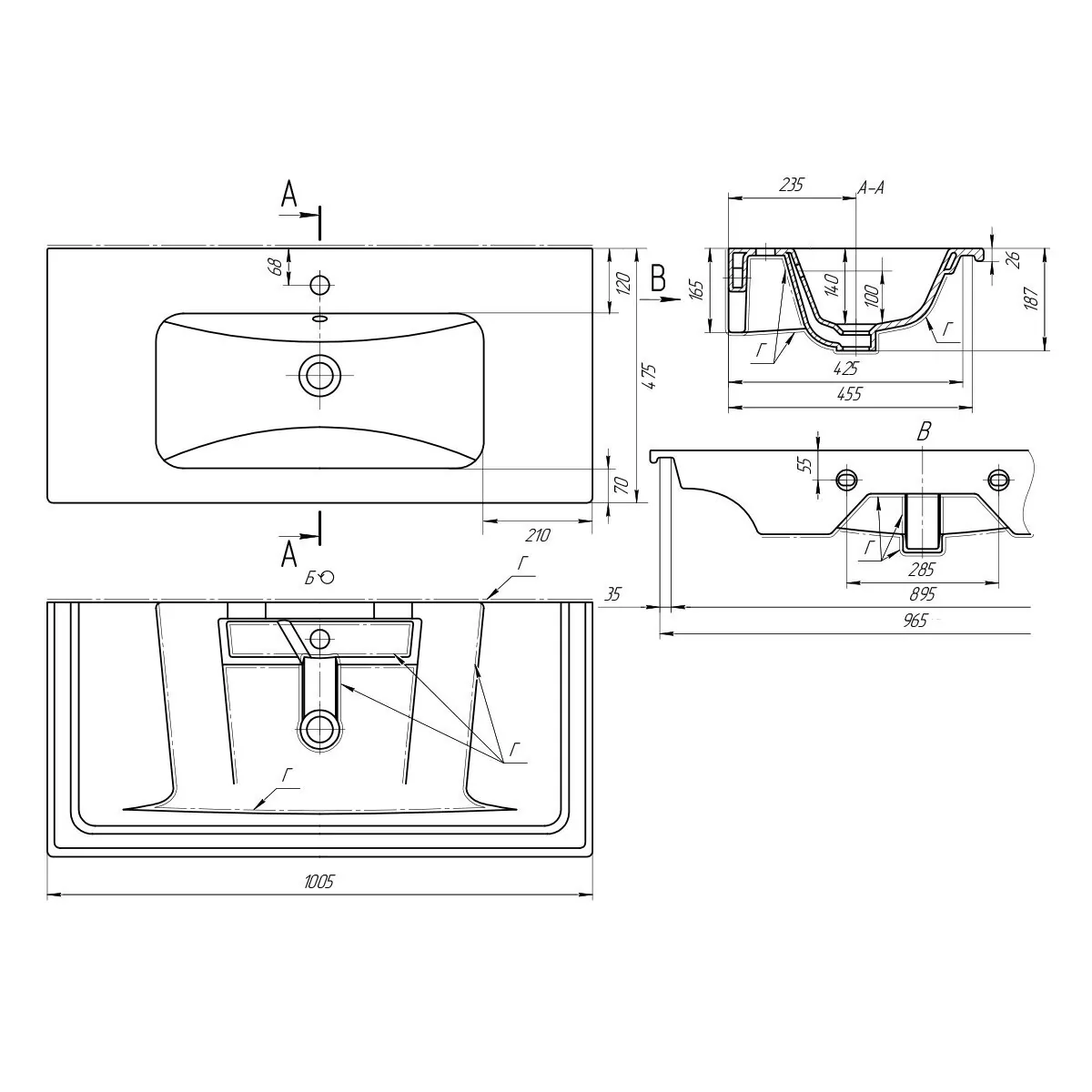 Ширина умывальника: 100. Ширина тумбочка: 97. Глубина умывальника: 45. Глубина тумбочка: 43.