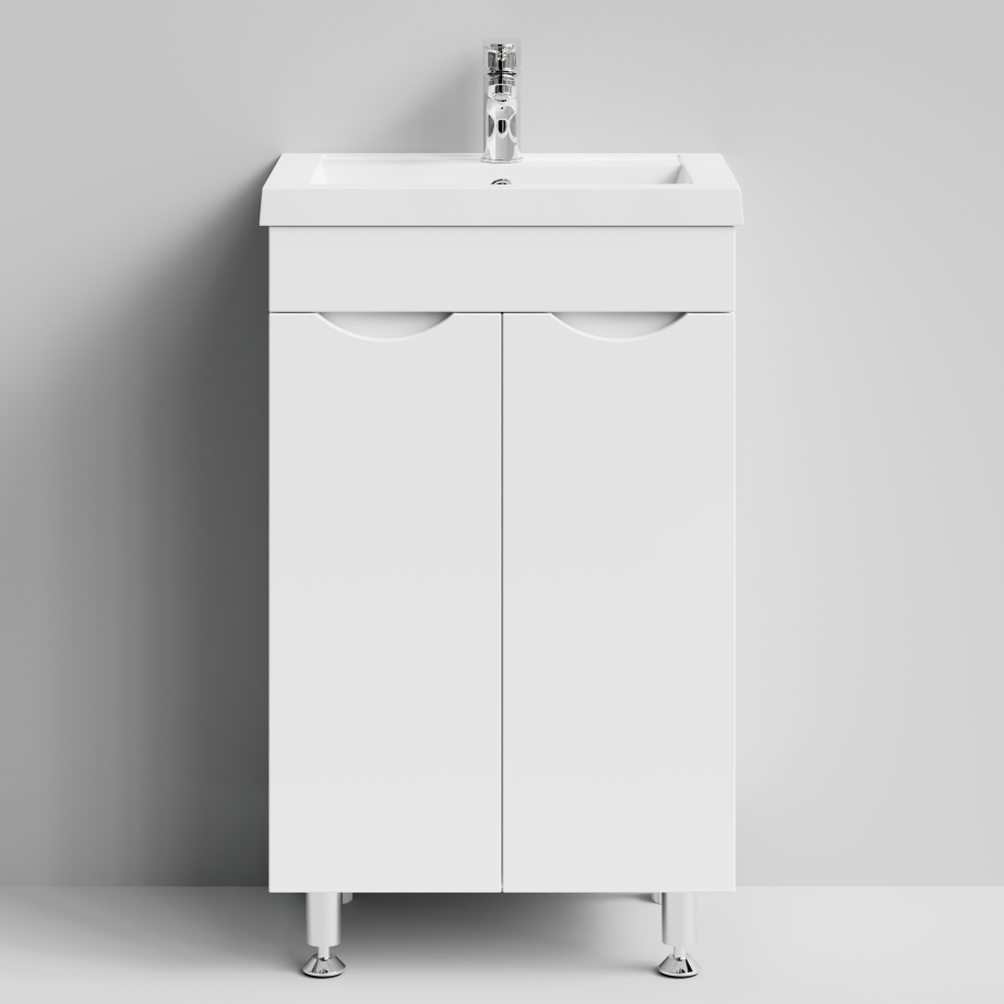 Тумба с раковиной Vod-ok Смайл 50 напольная, Белый глянец