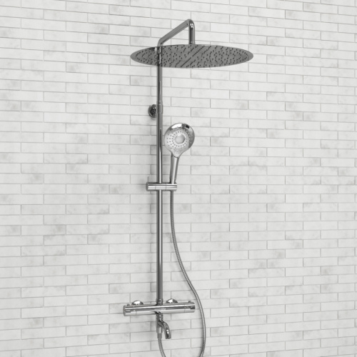 Душевая стойка WasserKraft A188.117.101.010.CH Thermo с круглым душем 400, термостатом, изливом, лейкой 3 режима, хром.