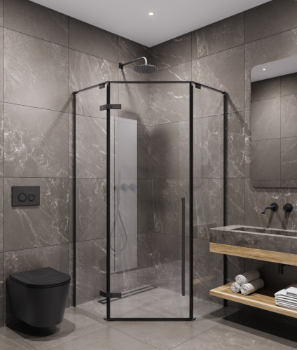 Душевой угол Timo TTSSP-100/03C-8, распаш 1000*1000*2000, профиль черный, стекло прозрачное 8 мм