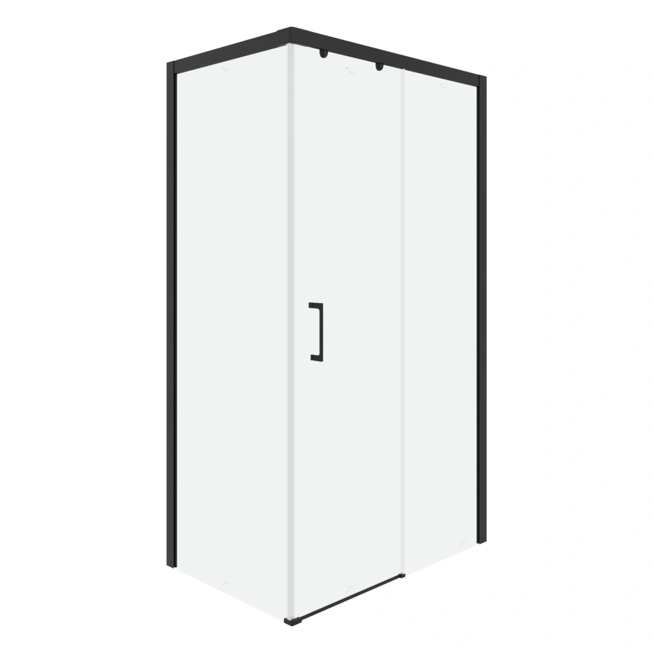 Прозрачное стекло придает уголку визуальную легкость. Сочетание черного и хромированного профиля подчеркивает современный дизайн модели.
