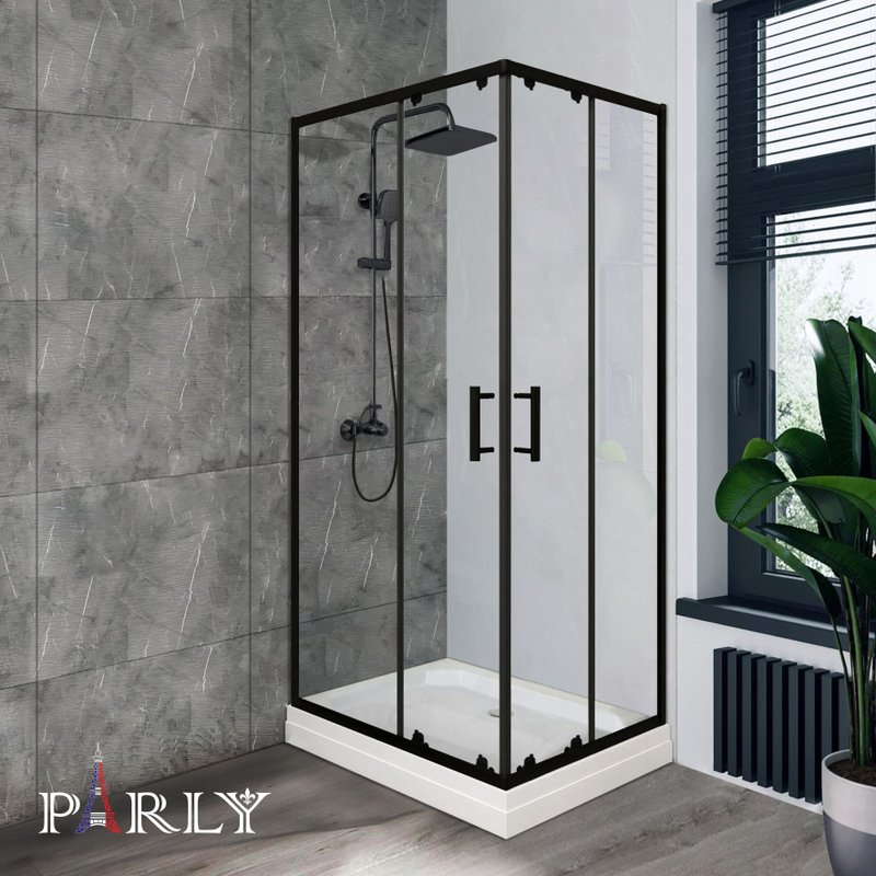 Уголок QZ81B N душевой PARLY низкий поддон (80х100х195) Преимущества: Поддон низкий, белый из ABS-пластика, дно с рисунком против скольжения, Профиль - черный, алюминиевый, Стекло - закаленное, прозрачное, толщиной 6 мм, Ручка - нержавеющая сталь.