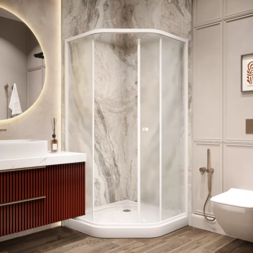 Душевой уголок Parly ZEР91FR пятиугольный, с низким поддоном, матовое стекло, белый.