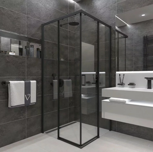 Душевой уголок Veconi RV47B-100-01-C4 100x100 квадратный, без поддона, прозрачное стекло, черный матовый.