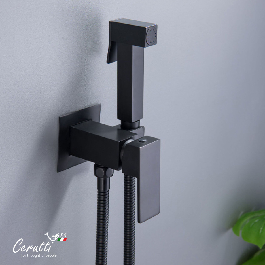 Смеситель с гигиеническим душем Ceruttispa Резия SHB (RESIA SHB) из латуни, с шлангом 120 см, цвет черный матовый