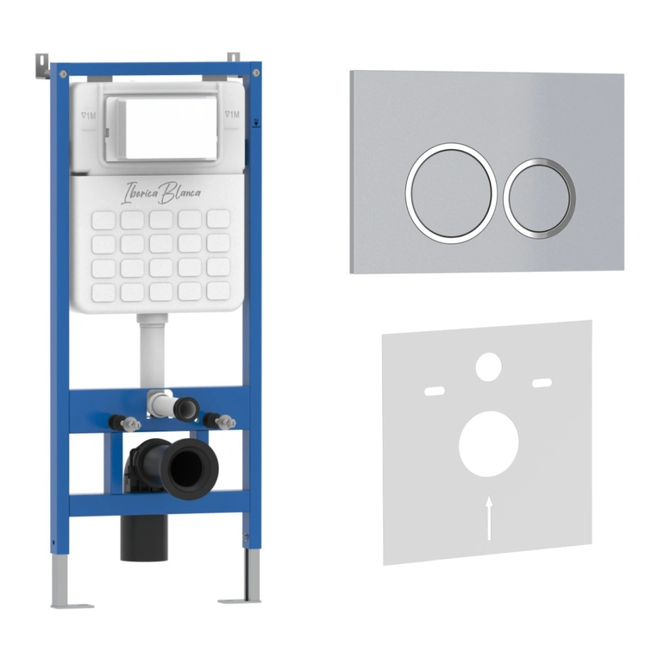 Комплект 2в1 IBERICA BLANCA инсталляция SILENCIO, кнопка смыва ESTI-O хром матовый (IB001.824)