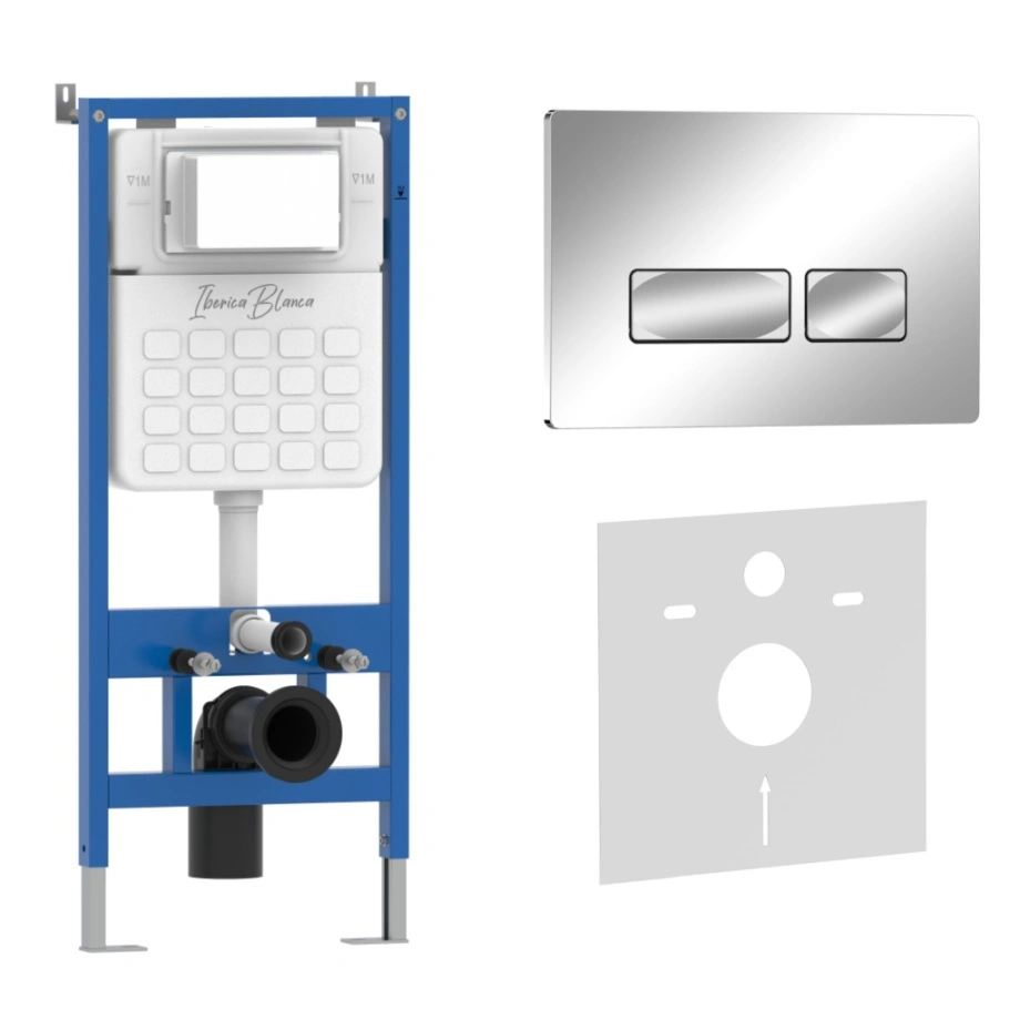 • рама инсталляции выполнена из высокопрочной стали с антикоррозийным покрытием, что обеспечивает надежность и долговечность. Механическая кнопка смыва для инсталляций Iberica Blanca представляет собой идеальное сочетание современного дизайна и высокой функциональности для вашей ванной комнаты.