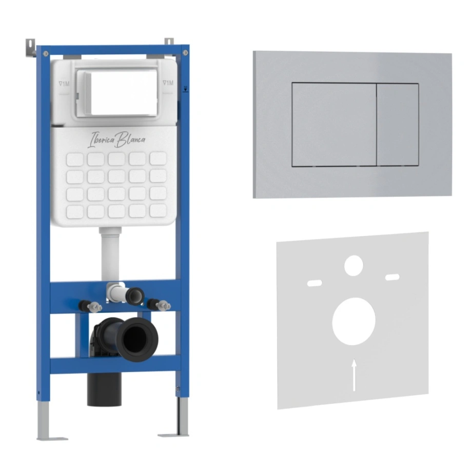 Комплект 2в1 IBERICA BLANCA инсталляция SILENCIO, кнопка смыва ESTI-S хром матовый (IB001.853)