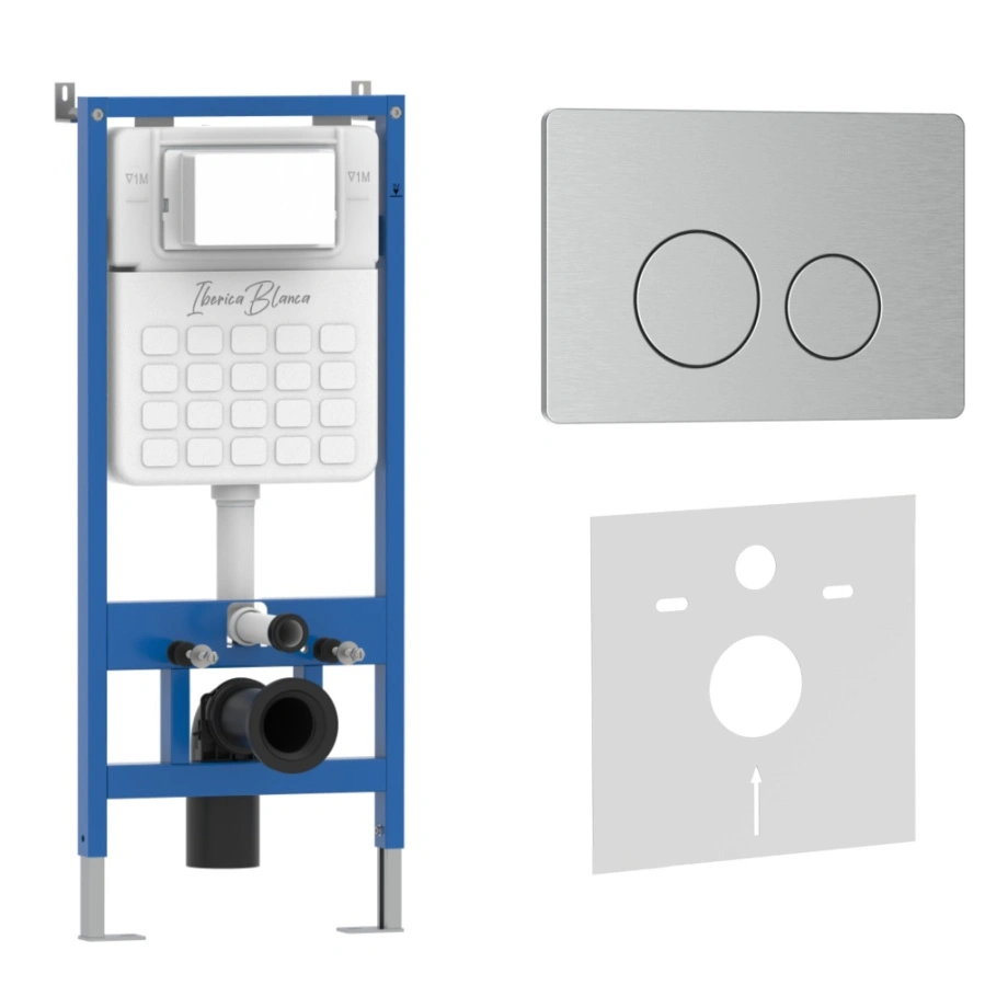 Комплект 2в1 IBERICA BLANCA инсталляция SILENCIO, кнопка смыва INOX-O хром матовый (IB001.8132)