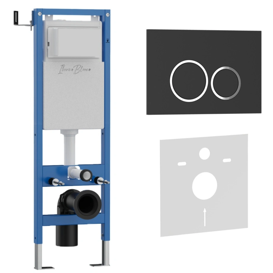 Комплект 2в1 IBERICA BLANCA инсталляция SILENCIO MINI, кнопка смыва ESTI-O черный матовый (IB.001M.822)