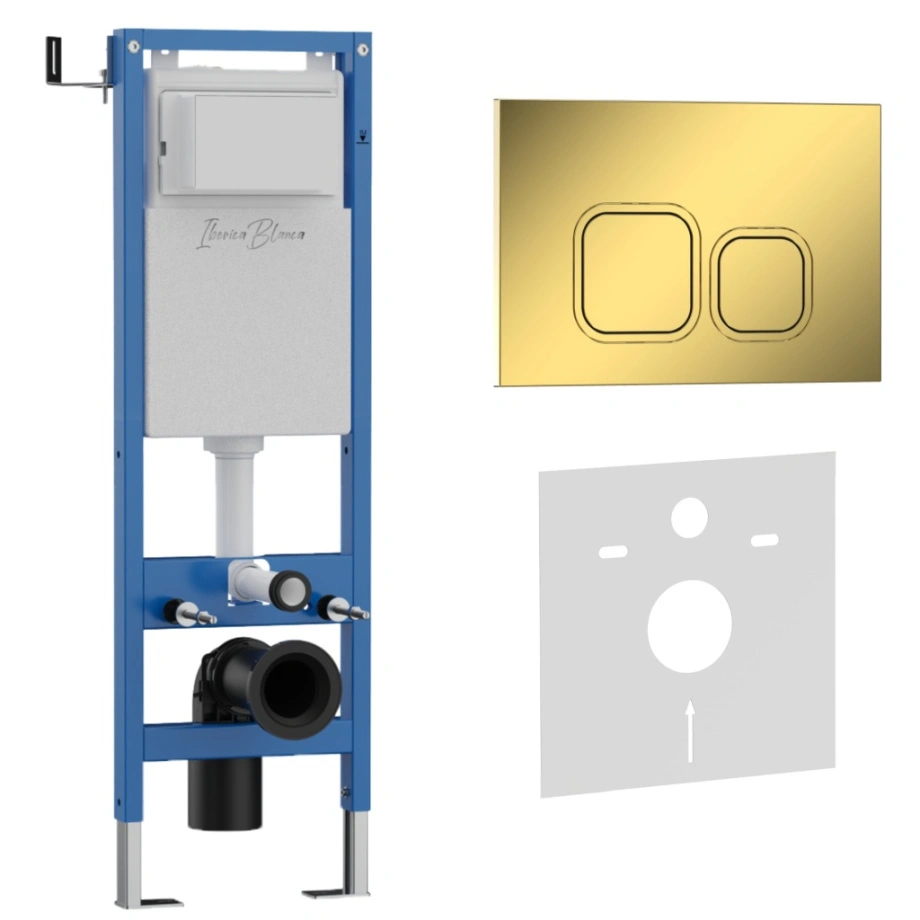 Комплект 2в1 IBERICA BLANCA инсталляция SILENCIO MINI, кнопка смыва ESTI-Q золото глянцевое (IB.001M.836)