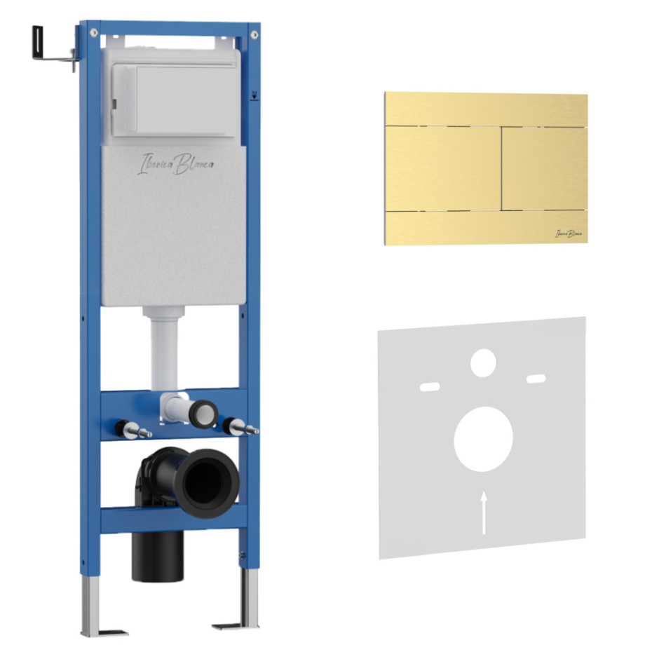 Комплект 2в1 IBERICA BLANCA инсталляция SILENCIO MINI, кнопка смыва INOX-R золото матовое (IB.001М.015.03)
