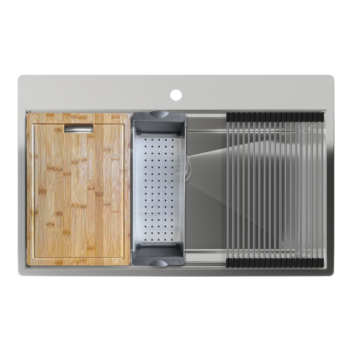 - Широкие возможности комбинирования с дополнительными аксессуарами: разделочной доской из массива дерева, ролл-матом, коландером