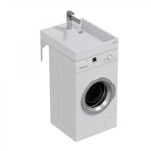 Раковина над стиральной машиной Санта Юпитер мини 50х60 прямоугольная, подвесная, из литьевого мрамора, с отверстием под смеситель, белая.