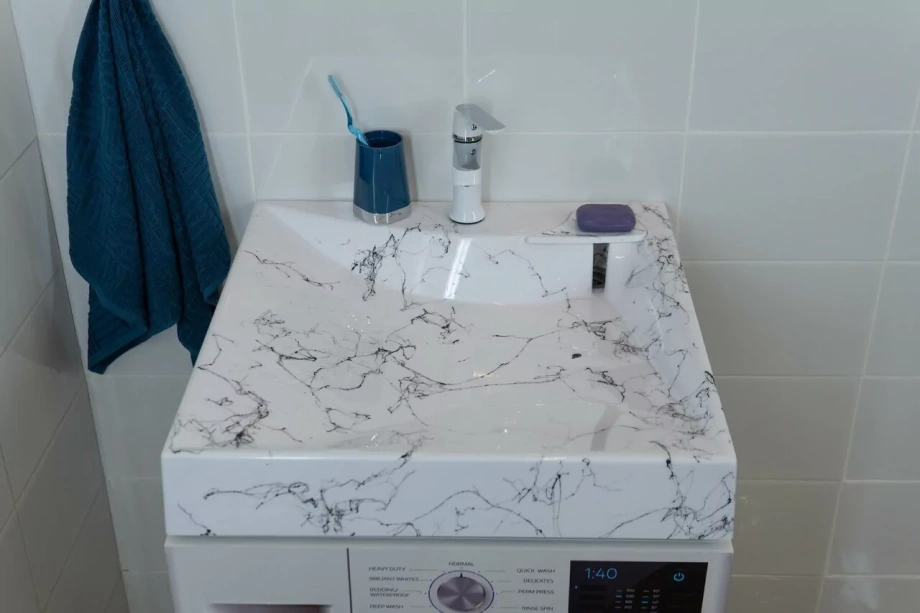 Раковина над стиральной машиной Stella Polar Турин 60х60 с мыльницей, белый мрамор.