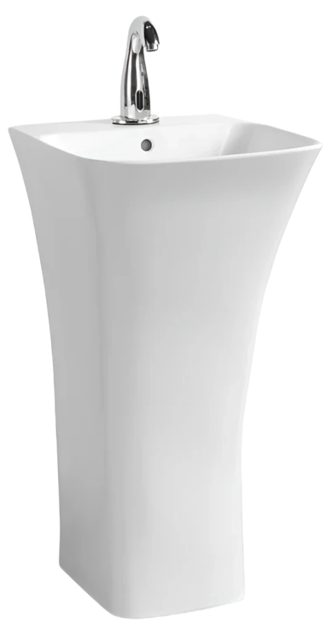 Монолитная раковина с функцией пьедестала, которая полностью закрывает канализационное соединение.