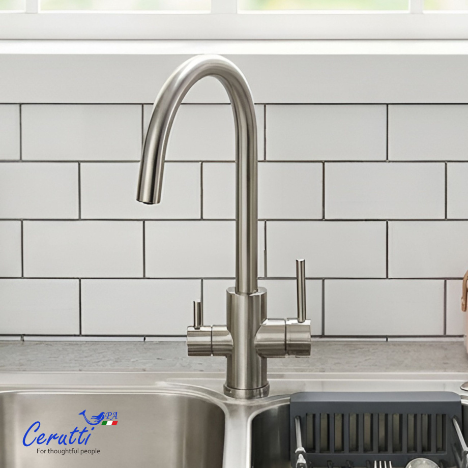 ANIELLO BN смеситель для кухни из нержавеющей стали, цвет МАТОВЫЙ НИКЕЛЬ, с выходом для фильтрованной воды Ceruttispa.