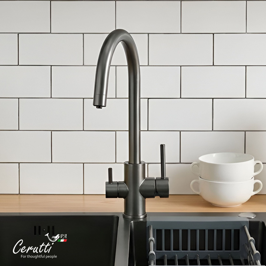 ANIELLO GG смеситель для кухни из нержавеющей стали, цвет ГРАФИТ, с выходом для фильтрованной воды Ceruttispa.
