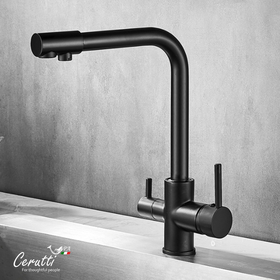 LAURA B Cмеситель для кухни, цвет ЧЕРНЫЙ МАТОВЫЙ из нержавеющей стали с выходом для фильтрованной воды Ceruttispa.