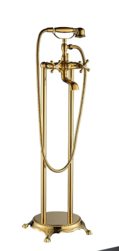 Смеситель для ванны BochMann Vico G BM9653 вентильный, напольный, с поворотным изливом и душем, золото.